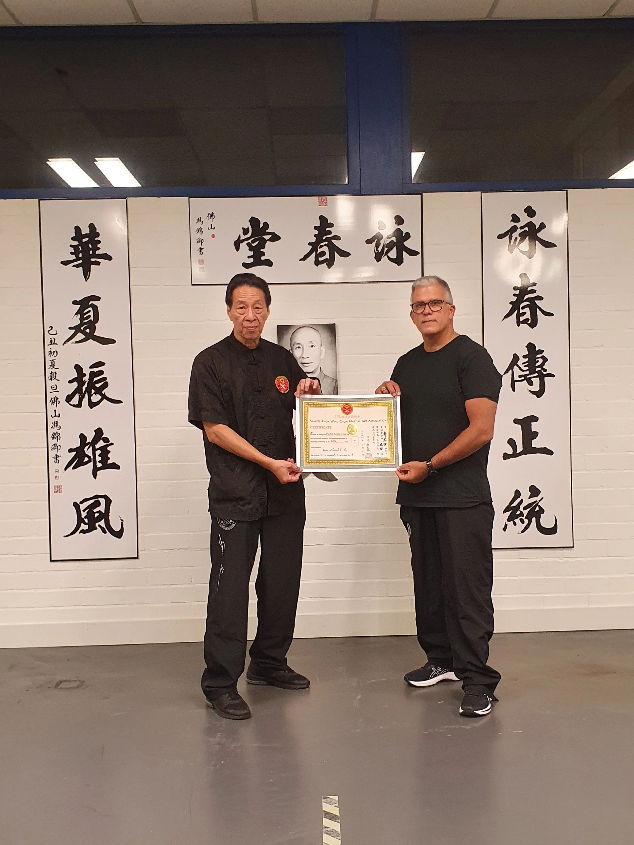 Sifu Mario Alvarez is a 3rd generation Ip Man Wing Chun. He has studied Wing Chun Kung Fu under the guidance of Grand Master Samuel Kwok since 2010. In 2019 Sifu Mario was adopted by Grandmaster Samuel Kwok at a Bai-Si ceremony in Blackpool, UK as his Kung Fu son (indoor student) and was named: 郭鎮恆 Kwok Chung Hang.